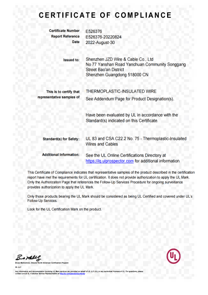 深圳建圳達電線電纜有限公司,成立于2000年,是一家電線電纜制造商,我們通過了世界各地不同市場的多數認證,如:CCC、RoHS、CB、SAA、TUV、VDE、PSE、BPS、UL、CSA。我們根據定制產品不斷更新新的認證。經過數十年的發(fā)展,我們與來自世界各地的客戶建立了長期的合作關系。我們曾經是菲律賓機場,,柬埔寨的電力站,美國的醫(yī)院,工廠,埃塞俄比亞的水電站項目。我們是一家值得信賴的電線供應商。